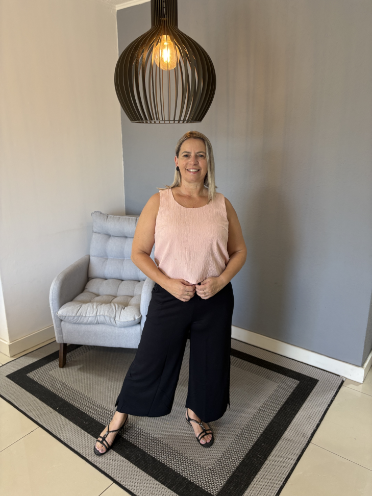 Versátil, ela transita facilmente entre o casual e o arrumado, combinando perfeitamente com calças de alfaiataria, jeans ou peças mais clássicas.